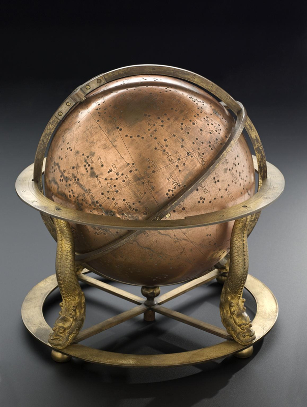 Chinese celestial globeThese globes from 1830 reflect how global exchanges produced new objects of knowledge and how the places where science happened were transformed. Qi Yanhuai, an official from Suzhou, manufactured this globe to update the imperial star catalog called the Compendium of Computational and Observational Astronomy (1723) and its Supplement (1742), the result of efforts by Jesuit and Chinese astronomers. By the 1820s the data was judged to be out of date and consequently astronomers such as Qi Yanhuai and Zhang Zuonan conducted new observations. These globes, therefore, demonstrate how Chinese users applied such translated models for their own purposes. Moreover, these globes expanded the audience for who produced astronomical knowledge. During the 18th century, exchanges occurred primarily at the Imperial court with Jesuit missionaries and other go-betweens. Yet that knowledge was limited. Only a handful of libraries had access to such printed books or manuscripts. These celestial globes aimed to distribute this knowledge more broadly through a different media and experience. They simplified computation and allowed for most educated people to participate. One remarkable feature of these globes is that they also function as clockwork devices. Created by Chinese clockmakers, these mechanisms transferred a global technology into a useful system for Chinese officials and families. The clock reported hours and time according to the traditional system of timekeeping in China, rather than simply a wall decoration. Moreover, since some globes included bells for hours of sunrise and sunset, the clocks could also be used as a practical device for bureaucratic needs to report those times to the city watch. More than just repurposing technology in a local context, Qi Yanhuai claimed that this feature was in fact what made them so useful as knowledge making devices. Although some conservatives viewed elaborate automata as wasteful and unnecessary or as appealing to base senses for popular audiences, Qi said that clockwork allowed one to check and evaluate celestial positions with just a single glance. They made calculations easier. “If your household has one, even your wife and children will be able to know the stars,” he said. Although clockwork connected this device to the world of entertainment, Qi suggested they were “Chinese instruments.”