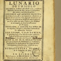 - Buenaventura Suárez (1679-1750), a Jesuit from Santa Fé (in present-day Argentina), spent most of his life as a missionary in the Río de la Plata Basin, where he composed these lunar ephemerides, published in Lisbon in 1748. This specific copy is a poignant reflection of the social structure within what would become the largest Jesuit mission in history, ultimately destroyed during the Guaraní Wars in the mid-18th century. Returning to South America, initially the copy belonged to Suárez himself, and later it was owned by Juan Sixto Mbiti, the Guaraní deputy "corregidor" of the village of San Lorenzo Mártir, in what is now Brazil. Besides having been written in Paraguay, printed in Lisbon, sent back to the author, and finally passing into the hands of a Guaraní official—knowledge in circulation in a most literal sense—the book includes a century-long lunar calendar and eclipse canon, along with the longitude differences between various major cities worldwide and the small locality of San Cosme, which effectively becomes the "center" of the world.
