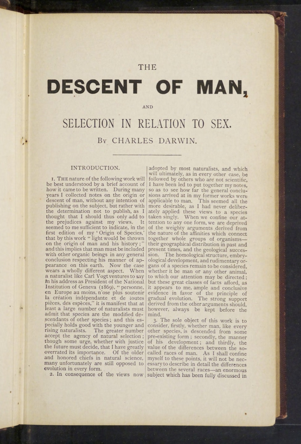Part of The Descent of Man, and Selection in Relation to Sex